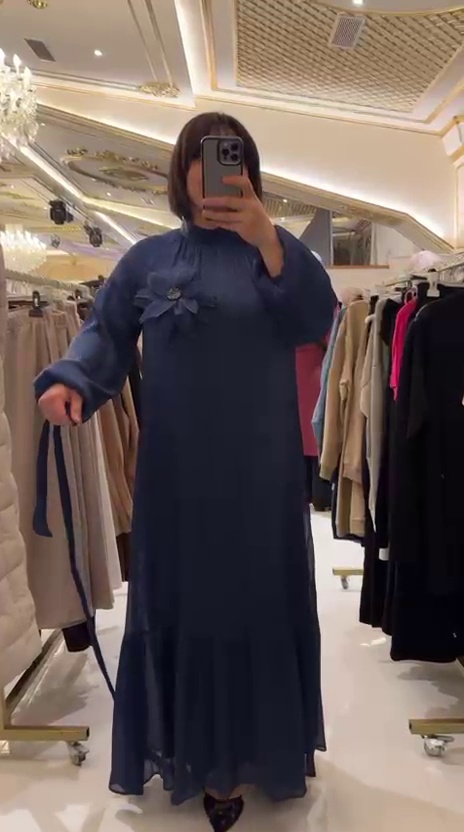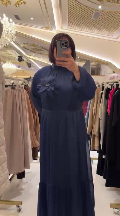 Göğüs kısmında yer alan üç boyutlu çiçek aplikesi ile dikkat çeken bu elbise, feminen ve zarif bir duruş sunar. Hakim yaka kesimi modele modern ve şık bir karakter kazandırırken, janjanlı şifon kollar tasarıma hafif ve ışıltılı bir hareket katar. Çiçek detayı istenildiğinde çıkarılabilir özelliğe sahiptir ve bu sayede elbise hem sade hem de iddialı şekilde kullanılabilir. Belden kemerli yapısı vücut oranlarını dengeli şekilde ortaya çıkarır. Armoni viskon kumaşın tok ve dökümlü yapısı elbisenin formunu korurken, içi astarlı tasarımı konforlu ve güvenli bir kullanım sağlar. Kahverengi rengin sıcak ve zamansız şıklığı ile özel günlerden davetlere kadar geniş bir kullanım alanı sunar.
