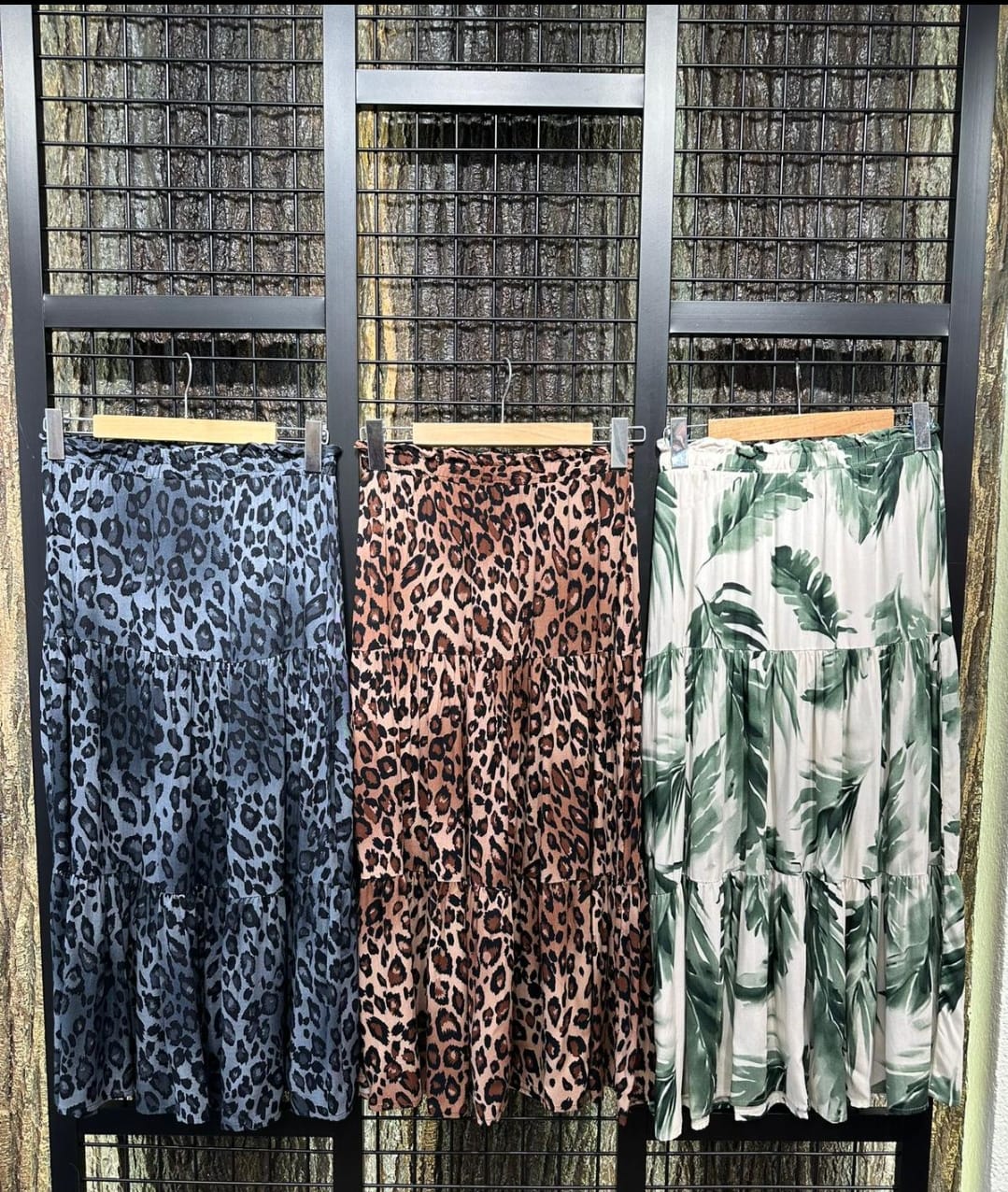 Leopar ve yaprak desen alternatifleri ile farklı tarzlara hitap eden bu etek basic tişörtler ve crop üstlerle kolayca kombinlenebilir