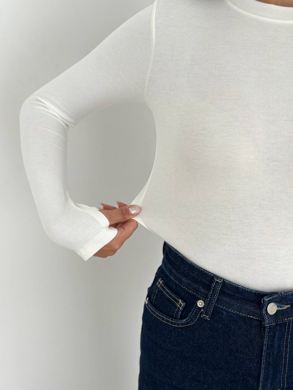 Parmak Detaylı Esnek Uzun Kollu Basic Body