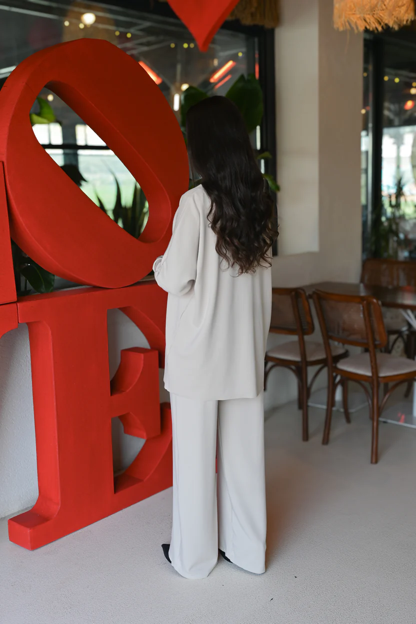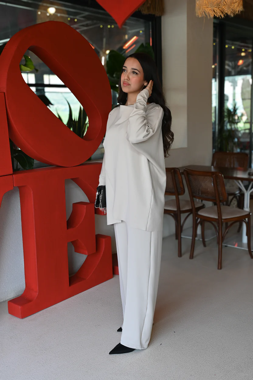 Scuba kumaştan üretilen bu rahat kesim ikili takım, günlük giyimde konfor ve stil arayanlara ideal bir seçim. Omuz detayında bulunan düğme tasarımı, tunik bluzun şık görünümünü tamamlarken, esnek ve hafif kumaş yapısı bütün gün rahatlık sağlar. Pantolon, geniş kesimi ve yumuşak dokusuyla hareket özgürlüğü tanırken, takım olarak sunulan kombinasyon pratik bir görünüm oluşturur. Ev, ofis veya günlük aktiviteler için çok yönlü bir tercih.